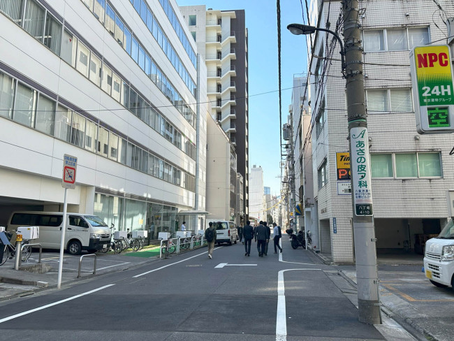 周辺は中規模のオフィスビルや、古くからの民家が並ぶエリアです。