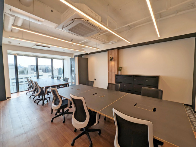 フルセットアップ仕様となり、会議室1つ、テレカンブース2つ、執務スペース、ラウンジペース等が設置済み。