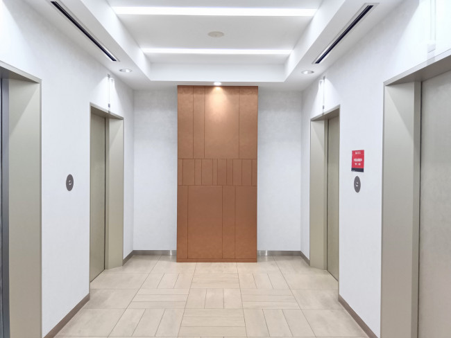 エントランスは機械警備、エレベータは4基完備。設備グレードの高さが伺えます。