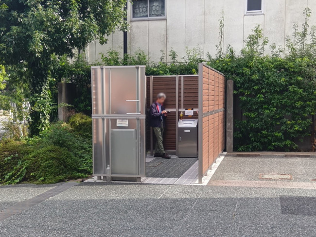 入口手前は広々としており、敷地内の屋外喫煙所も比較的大きめに設けられています。